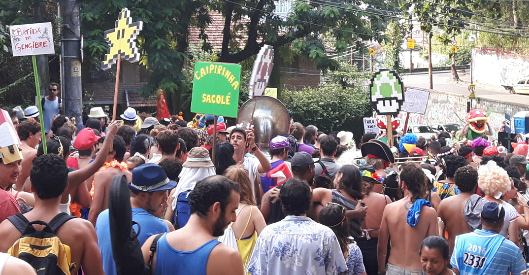 Até aí tudo dentro dos conformes para quem tem um coração não-amargo. A diferença neste 2016 é que, na minha humilde opinião, o carnaval já foi “zerado”. Afinal, o Super Mario Bloco desfilou de surpresa na quinta-feira anterior ao carnaval, dia 4 de fevereiro. Isso, aquele bloco que só toca músicas do clássico game Mario Bros. Irretocável.
