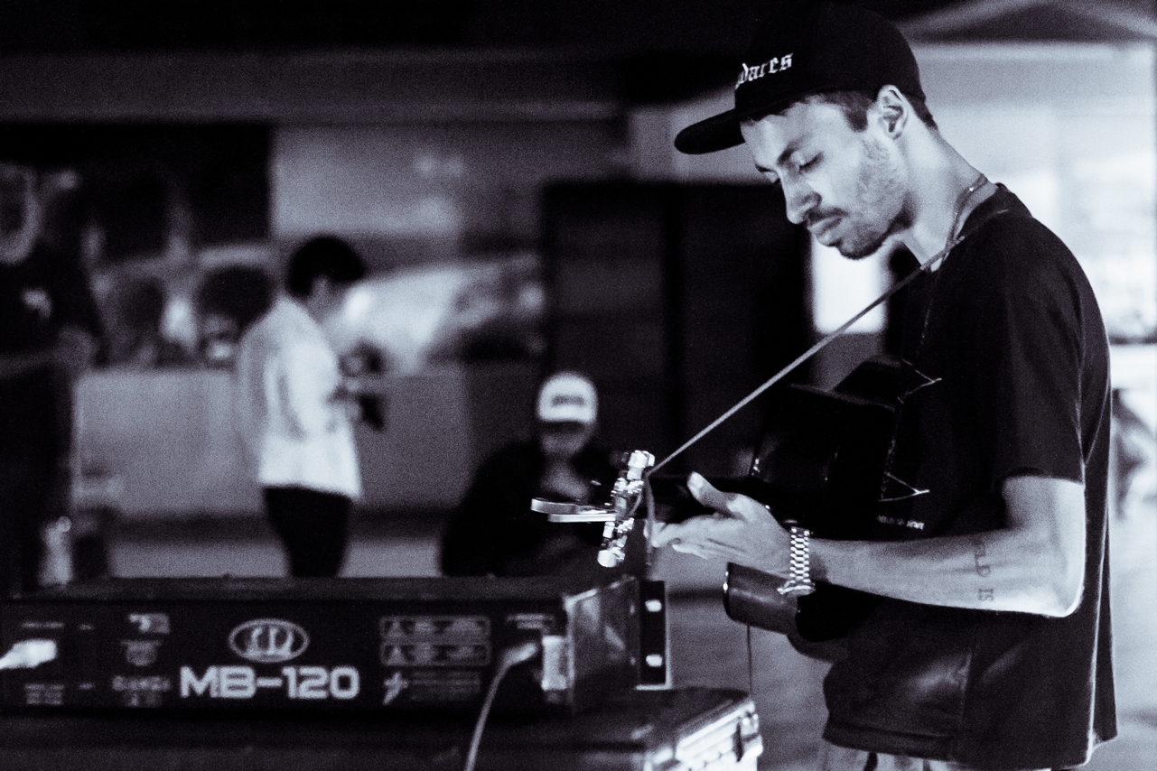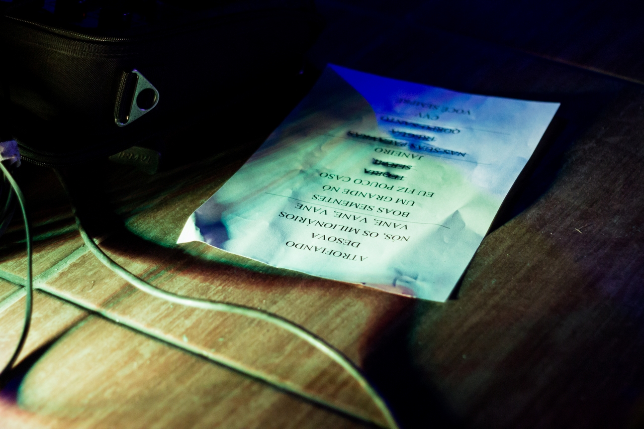 Com aproximadamente duas horas de atraso, o evento começou com a apresentação de Vitor Brauer. O mineiro utilizou apenas voz, violão e alguns pedais em seu set. A “falta” de instrumentos não chega a ser percebida, pois a inquietude de Brauer, que toma vida por meio de sua voz, é a sua carta na manga. Vitor tem uma característica que me encanta e que é escassa: ele não permite que sua obra seja rotulada. Ele canta rap, recita poesia, faz música eletrônica e mais um monte de coisa, tudo junto e sem que o conjunto perca o sentido.