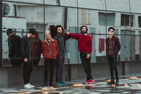 Alaska é um quinteto formado por (da esquerda para a direita): Vitor Dechem (teclado, guitarra e voz), André Ribeiro (voz, guitarra e sintetizadores), Wallace Schmidt (baixo), Nicolas Csiky (bateria) e André Raeder (guitarra). (Foto: Stefano Loscalzo)