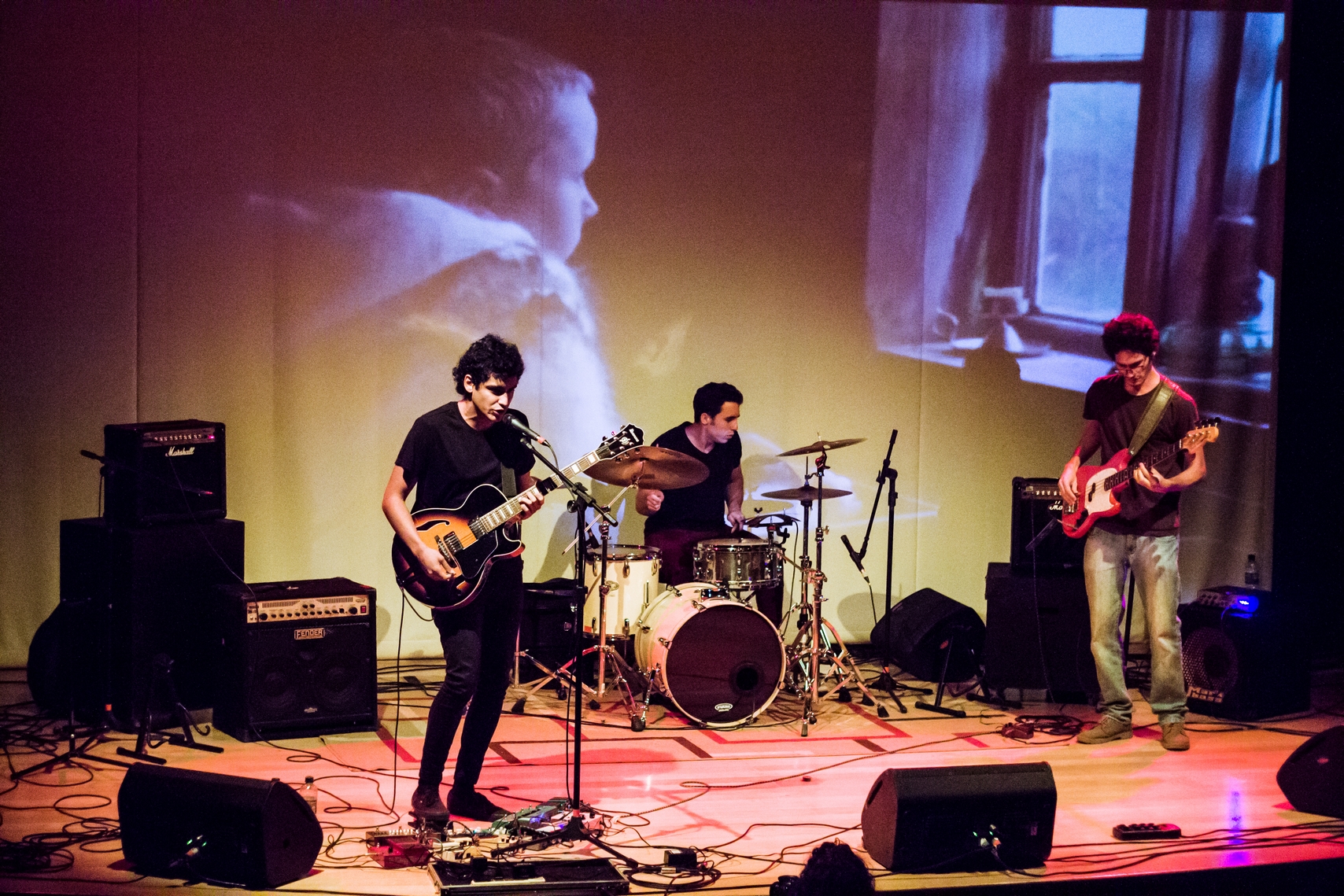 Rafael Lamim (voz e guitarra), Daniel Freire (voz e bateria), Murilo Barros (guitarra) e João Victor (baixo) tocam com entusiasmo e entregam uma apresentação que, no mínimo, desperta a curiosidade de quem ainda não os conhece. Quando não estava soltando gritos rasgados no microfone, o vocalista caminhava de um lado para o outro com sua guitarra, que insistia em se soltar da correia. As vozes também ficam por conta de Daniel, que alterna entre o microfone e a bateria. Os dois se dividem entre vozes mais melódicas e screamos. Essa combinação dá muito certo e chama atenção, como em “Azarnoazar”, que, mais para o fim, é tomada por guitarras distorcidas. O comportamento elétrico dos dois se contrapõe à performance mais introspectiva de Murilo e João.